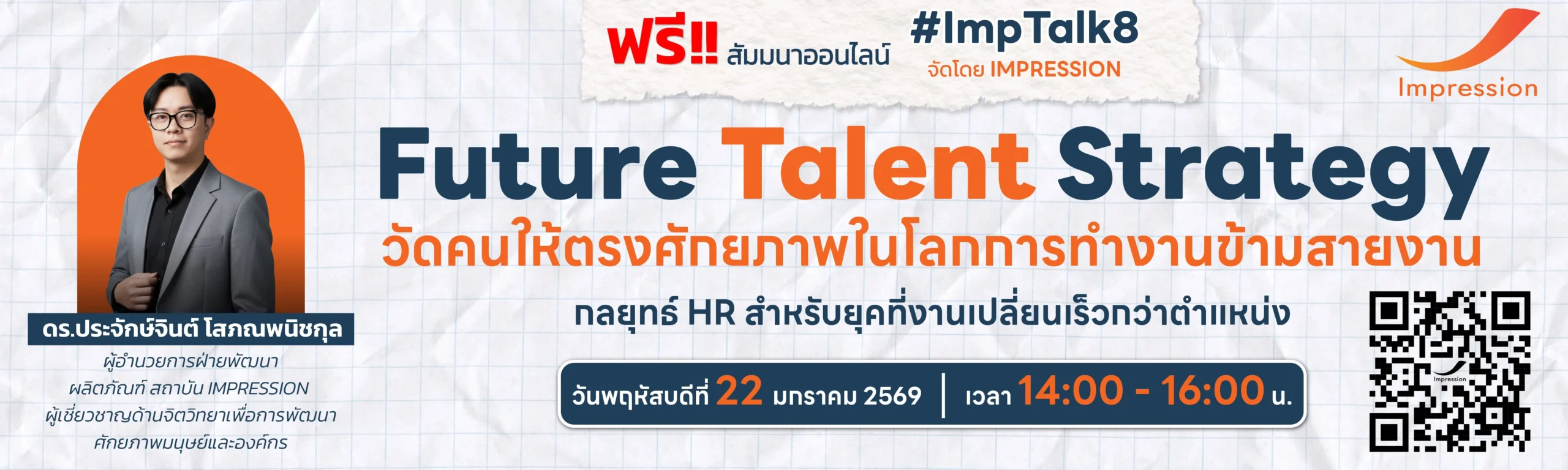 IMPRESSION เป็นสถาบันชั้นนำของประเทศไทยที่ให้บริการแบบครบวงจรด้วยประสบการณ์มากกว่า 19 ปี เพื่อพัฒนาศักยภาพบุคลากร และองค์กรให้ก้าวสู่ความสำเร็จ เราให้บริการมามากกว่า 1,000 องค์กร และช่วยพัฒนาความสามารถของบุคลากรมากกว่า 100,000 คน ให้เติบโตและเปลี่ยนแปลงได้อย่างแท้จริง